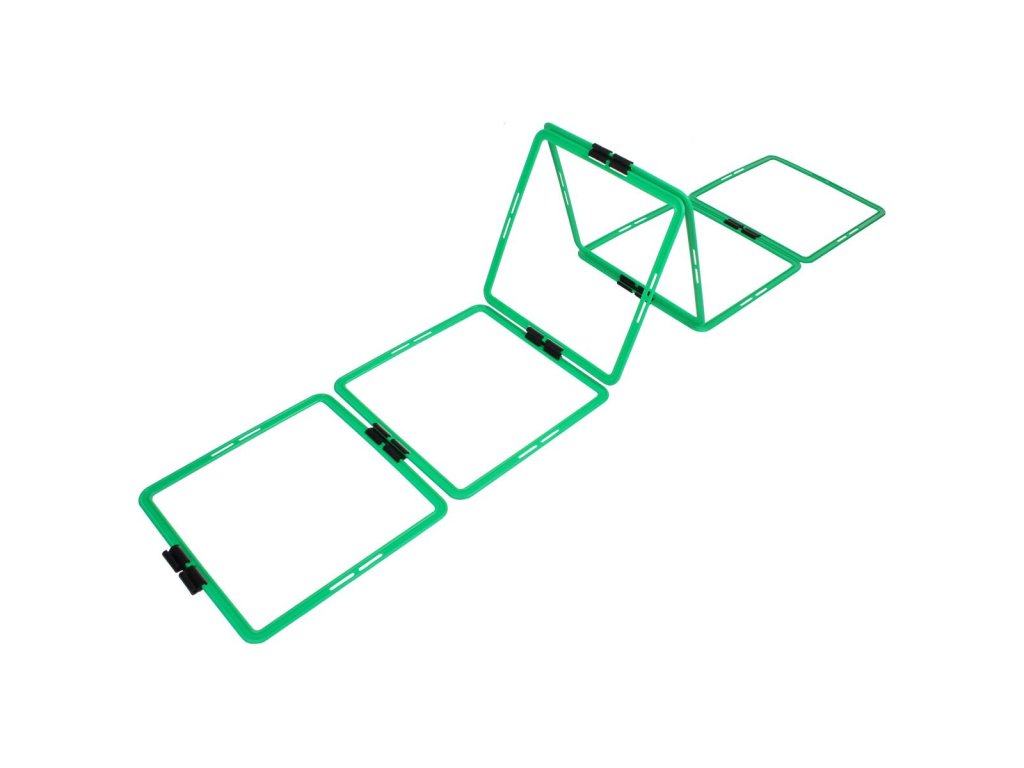 Sada šesti agility překážek se hodí pro sportovce všech sportovních odvětví. Díky této pomůcce můžete efektivně trénovat rychlost a koordinaci dolních i horních končetin. Sadu mohou využít také sportovní kluby všech věkových kategorií. Své uplatnění najde i ve školách a školkách. Čtverec o velikosti 40 x 40 cm má po každé straně speciální otvory pro propojení spojkami. Sestavit tak můžete agility dráhu různých rozměrů. Doplňte tuto pomůcku o další agility pomůcky a vytvořte tak komplexní agility dráhu. Vybrat si můžete i z několika barevných provedení.Doplňkové parametry