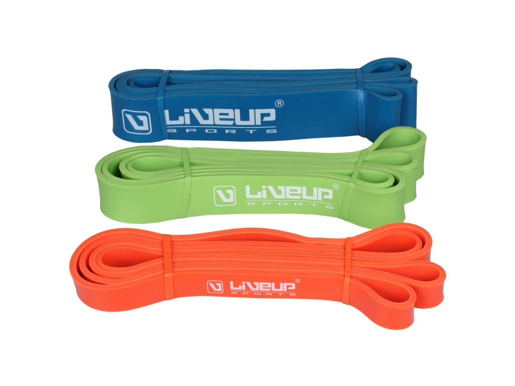 Posilovací gumy LiveUp 208 cm (obvodová délka) x 0,45 cm najdou využití při všech druzích tréninku, u kterých se provádí protahovací a posilovací cviky celého těla. Aerobic gumy LiveUp 208 x 0,45 cm se vyrábějí ve třech různých barvách / šířkách (oranžová / 2,1 cm; zelená / 3,2 cm; modrá / 4,5 cm), pro docílení progresivního cvičení. Odpor Light (oranžová): 11 – 30 kg Medium (zelená): 16 – 38 kg Heavy (modrá): 23 – 57 kgDoplňkové parametry
