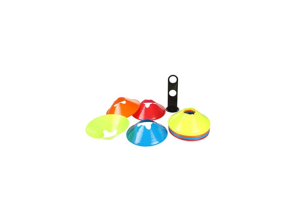 Vytyčovací víceúčelové mety Jumbo s průměrem 19,5 cm a výškou 5 cm jsou vyrobené z měkčeného plastu a jsou tak odolné proti prošlápnutí nebo jiné deformaci. Díky různým barvám lze z met vytvořit pestrou a nápaditou dráhu. Do výřezů na vrcholu lze vložit tyčky s průměrem 25 mm a postavit tak na dráze i překážky. Sada obsahuje 32 met rovnoměrně rozdělených do 4 barev a plastový stojánek pro jejich snadné přenášení.Doplňkové parametry