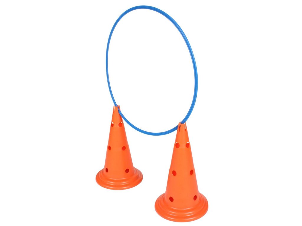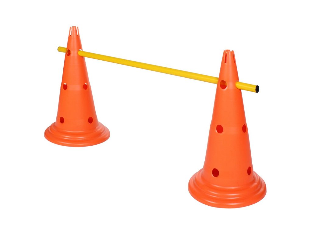 Značkovací kužel ve dvou barvách ( oranžová a žlutá) s výškou 52 cm pro vymezení hracího hřiště nebo pro vytvoření slalomové a překážkové tréninkové dráhy. Víceúčelový kužel Multi je na rozdíl od klasických modelů velmi variabilní a má univerzální využití. V jeho plášti je celkem 12 otvorů s průměrem 3 cm umístěných ve třech výškách. Na špičce kuželu je křížový výřez. Do otvorů je možné zasunout v libovolné kombinaci překážkové tyče a do výřezu na vrcholu umístit další tréninkové pomůcky s menším průměrem (např. kruh). Kužel Multi doporučujeme zkombinovat s plastovými tyčkami P1, P2, P3, teleskopickou tyčí P4 nebo HP překážkovým kruhem. Parametry: -výška 52 cm -otvory ve výškách 8, 23, 38 cm -základna kužele: průměr 29,5 cm -hmotnost: 0,5 kg Materiál: plastDoplňkové parametry
