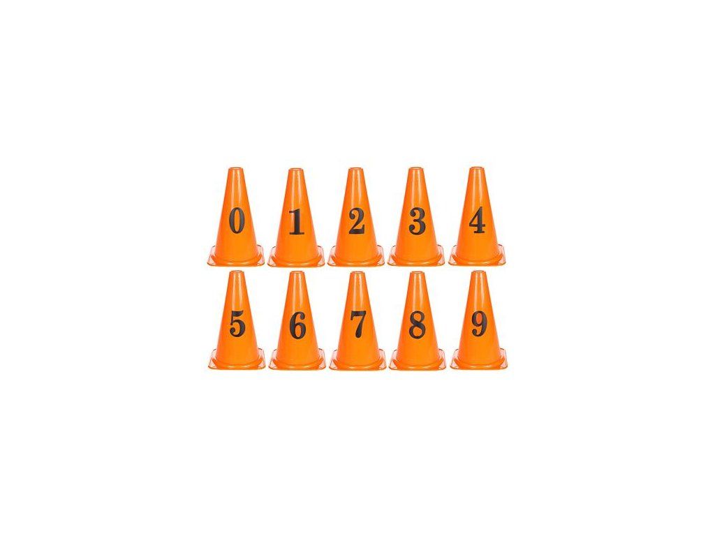 Merco Number Set je skvělá pomůcka pro školy, školky, sportovní kluby, zájmové kroužky nebo dětské tábory. Díky sadě deseti plastových kuželů s čísly od 0 do 9 a výškou 23 cm, můžete dětem zábavnou i vzdělávací formou vyznačit přehledně slalomovou dráhu, označit místa doskoku, nebo dohozu nebo třeba označit jednotlivá stanoviště při různých hrách nebo sportovních soutěžích. Kombinovat můžete také se sadou kuželů s písmeny Alphabet set. Obsah balení: - 6 plastových kuželů (výška 23 cm, základna 14,5 x 14,5 cm, váha 1 kužele: 85 g) Materiál: plast PVC