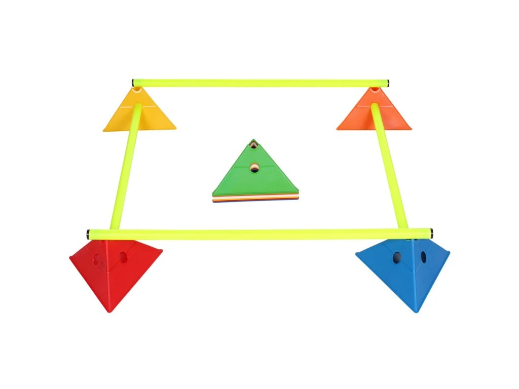 Multifunkční vytyčovací mety Merco Tri Corners jsou praktickou pomůckou trenérů různých sportovních odvětví. Mety slouží k vyznačení tréninkové plochy a vytvoření agility překážek ve spojení s plastovými tyčemi s průměrem 25 mm. Plastová meta má výšku 13,5 cm, délku strany 24 cm a hmotnost přibližně 75 g. Mety se prodávají po 1 ks.
