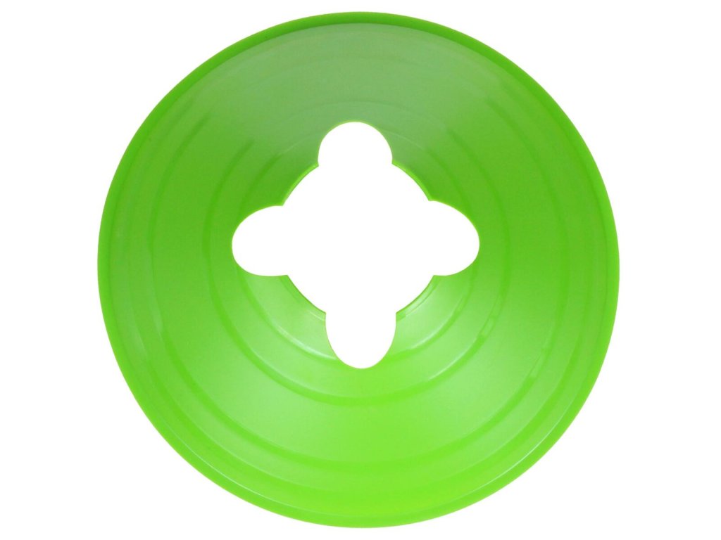 Vytyčovací víceúčelové mety Jumbo s průměrem 19,5 cm a výškou 5 cm jsou vyrobené z měkčeného plastu a jsou tak odolné proti prošlápnutí nebo jiné deformaci. Díky různým barvám lze z met vytvořit pestrou a nápaditou dráhu. Do výřezů na vrcholu lze vložit tyčky s průměrem 25 mm a postavit tak na dráze i překážky. Pokud si budete chtít vytvořit vlastní sadu met v různých barvách můžete využít kovový stojánek nebo plastový stojánek Jumbo.