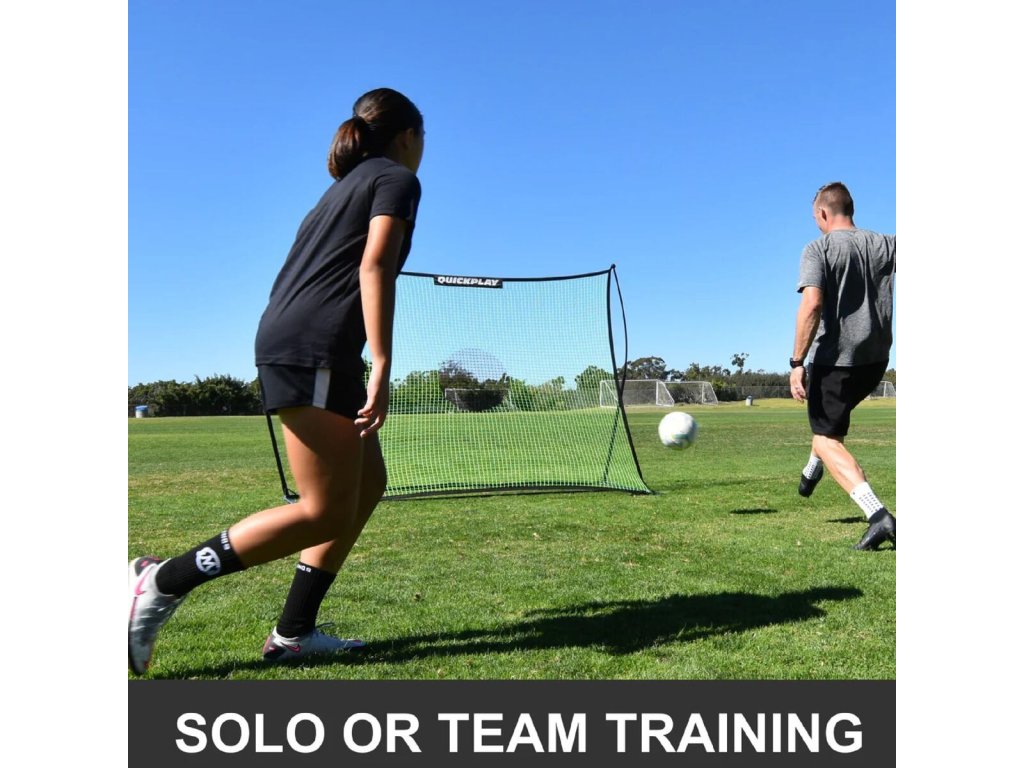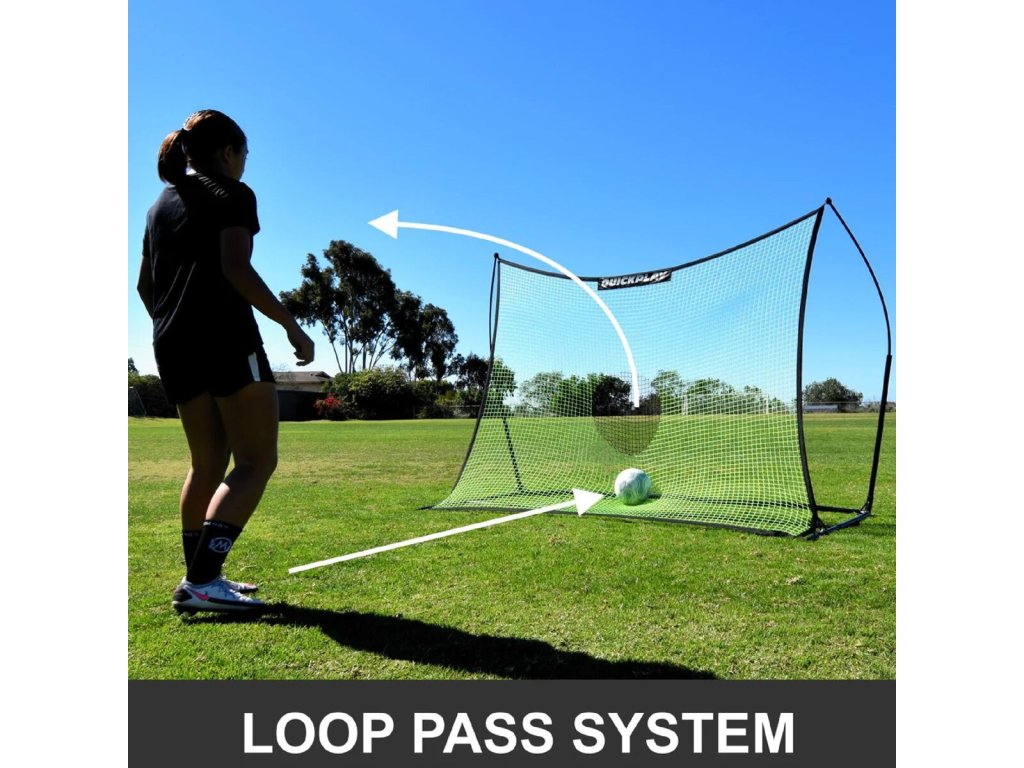 Fotbalová nahrávací síť Quickplay Tekkers XL 8x6 FT je účinná tréninková pomůcka, díky které si zlepšíte techniku přihrávek a zpracování míče. Je vhodná pro individuální i týmový trénink a pro všechny věkové kategorie. Díky své konstrukci trenažér složíte jednoduše během pár minut. Součástí balení je také praktický vak, díky kterému trenažér lehce uskladníte a přenesete mezi jednotlivými tréninky. Do trávy jej upevníte pomocí přiložených kovových kolíků.