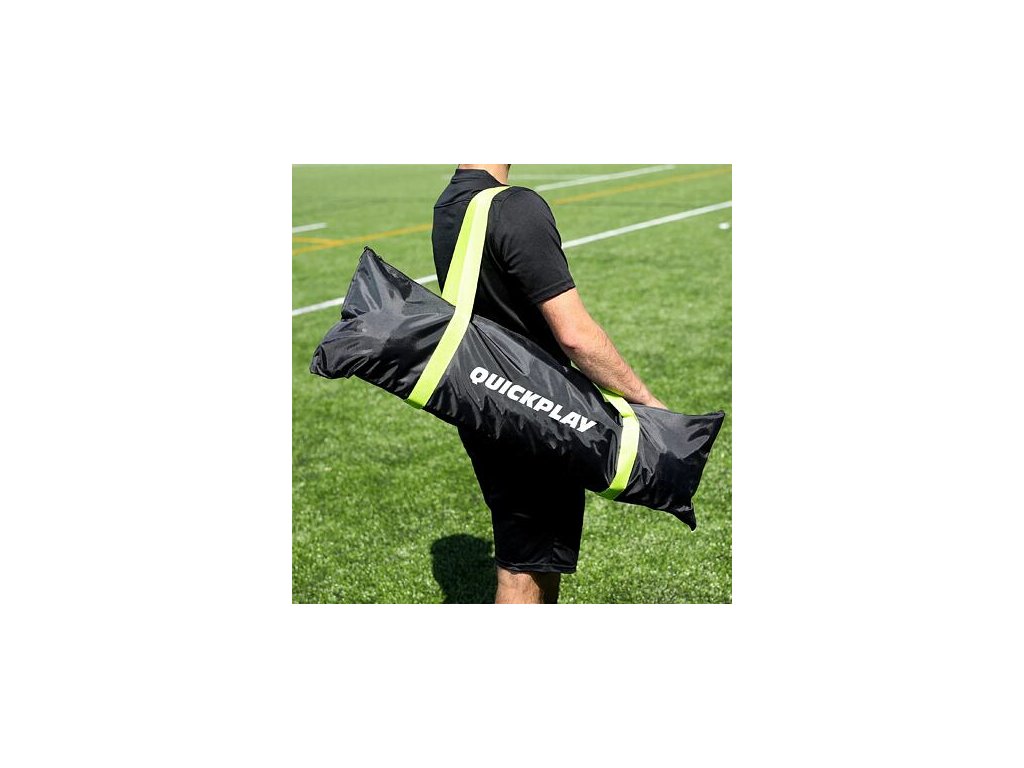 Značka Quickplay představuje řadu fotbalových branek na trénink Kickster ELITE. Oproti klasickému modelu tato branka nabízí stabilní zatíženou základnu a díky tomu je tento model vhodný pro tvrdé povrchy jako umělý trávník, beton či do tělocvičny. Tato branka na fotbal je díky své konstrukci lehce skládací a pomocí přiloženému vaku ji jednoduše uskladníte a přenesete mezi jednotlivými tréninky. Je navržená tak, aby byla odolná a přenosná, s patentovaným systémem FLEXI POST využívajícím kombinaci oceli a skelných vláken v rámu spolu s flexibilní látkovou příčkou a systémem sloupků. Branka Kickster ELITE je vhodná pro individuální trénink i pro fotbalové kluby. Branka obsahuje také kolíky pro upevnění do země. - materiál: ocel, sklolaminát. PE - rozměry: 366 x 183 x 110 cm - hmotnost balení: cca 14,3 kg - rozměry balení: 120 x 22 x 16 cm - jednoduchá a rychlá montážDoplňkové parametry