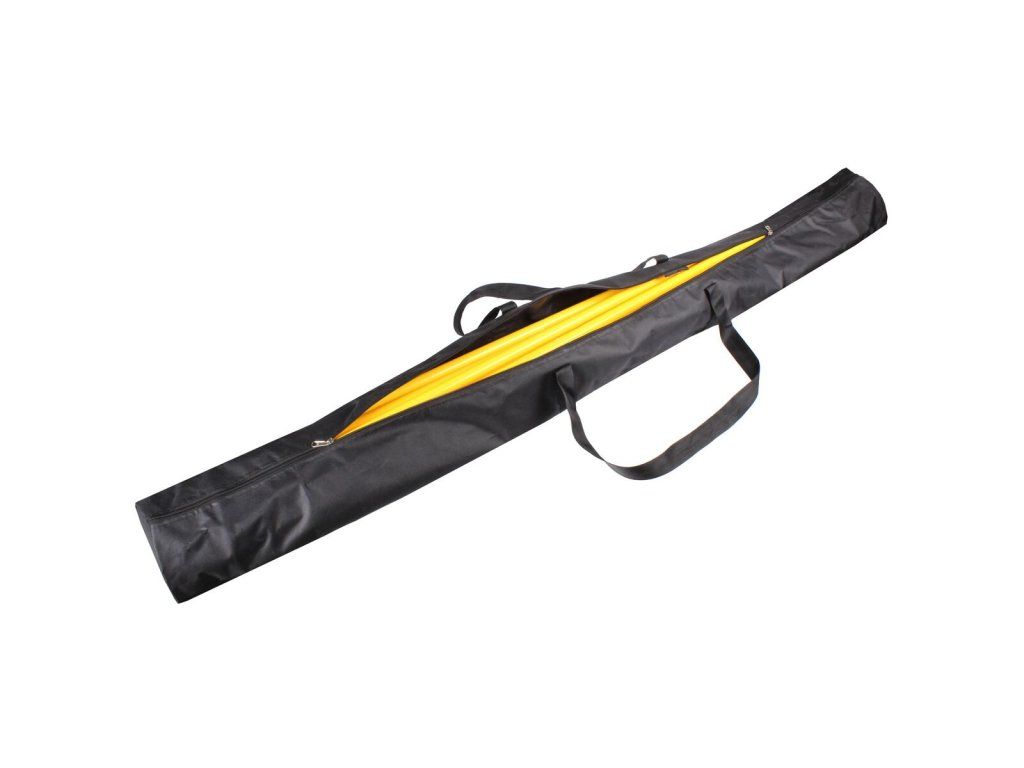 Vak Slalom Bag 20 je praktická pomůcka pro jednoduché uskladnění a přenášení slalomových či plastových agility tyčí mezi jednotlivými tréninky. Tato taška je vyrobená z odolného polyesteru a je vhodná pro 20 slalomových tyčí s maximální délkou 170 cm. Taška má klasické zapínání na zip a dvojité poutko pro přenášení v ruce či přes rameno. Délka tašky je 185 cm, její průměr 17 cm a hmotnost samotné tašky je přibližně 0,61 kg. Usnadněte si práci při tréninku s taškou na tyče Slalom Bag 20. Upozornění: tyče nejsou součástí balení. Obrázek je pouze ilustrativní. Parametry: - materiál: polyester - délka: 185 cm - průměr: 17 cm - hmotnost tašky: 610 g - pro slalomové tyče či plastové agility tyče