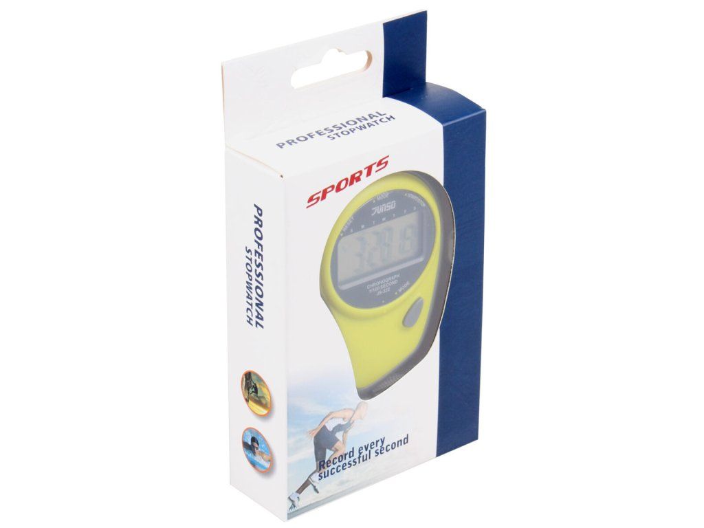 Sportovní stopky JUNSD JS-322 jsou díky své nízké ceně a jednoduchému ovládání vhodné pro každého trenéra, školy, sportovní oddíly nebo sportovce, kteří chtějí mít přehled o časech svých výkonů. Funkce: - hodiny, minuty, sekundy & dny v týdnu - datum - stopky s přesností 1/100 sekundy - alarm - 30 sekundová korekce pro synchronizaci - 12/24 hodinový displej - maximální počet: 23h 59min 59sek
