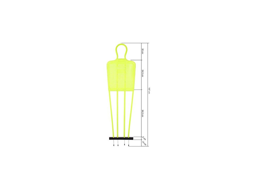 Celoplastová figurína Defence Mannequin s výškou 180 cm a hmotností 3,5 kg slouží k nácviku přesnosti přímých kopů, nácviku herních situací při zahrávání trestných kopů a zároveň i jako tréninková pomůcka pro fotbalové brankáře při těchto situacích. Tréninková figurína Defence Mannequin ve výrazné neonově žluté barvě je vybavena čtyřmi ocelovými 13 cm dlouhými bodci pro stabilní ukotvení do travnatého hřiště. Tato užitečná pomůcka by měla být součástí tréninkové výbavy každého fotbalového klubu. Pro používání figuríny na umělém, nebo jiném pevném povrchu můžete zakoupit stojan Defence Mannequin Base. Podrobné rozměry tréninkové figuríny naleznete ve fotogalerii.