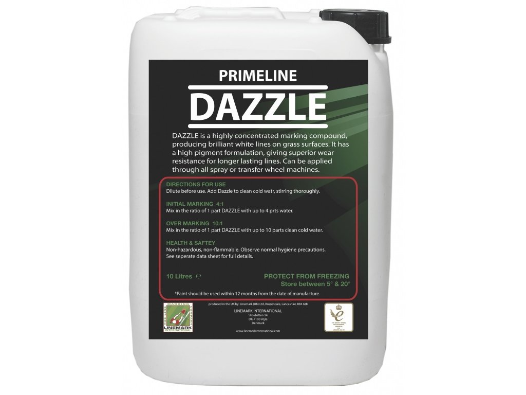 Tato barva je naší nejlepší koncentrovanou barvou, která byla vyvinuta speciálně pro potřeby profesionálních klubů. Jedná se o vysoce pigmentový koncentrát, který poskytuje dlouhotrvající a odolnou bílou čáru. Pro první lajnování se ředí v poměru od 4:1. Pro přelajnování pak v závislosti na potřebách kvality je možné ji ředit až do poměru 10:1.Barva Dazzle je určena k použití jak se sprejovou lajnovačkou, tak i s tradiční bubnovou. Při použití sprejové lajnovačky iGO je vhodné použí ploché trysky a nikoli kuželovité.